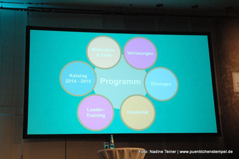 Und auch wenn vieles von dem, was Herr Schlosser uns an die Hand gegeben hat für meinen persönlichen Geschmack zu testosteronlastig ist und nicht unbedingt mit dem einhergeht, wie ich mein Stampin‘ Up! Geschäft führen möchte, muss ich ihm zugestehen, dass einige seiner Anmerkungen sehr treffend und in abgewandelter Form sicherlich auch für mich anwendbar sind. Meine kurzfristige Sorge allerdings, dass sein Kunstgriff, vor 500 Mädels das Jacket fallen zu lassen und das etwas zu eng und kurz geratene Rekru-Tier-Shirt zu präsentieren, spontan zu „Ausziehen, Ausziehen“-Chorgesänge leiten könnte, blieb Himmel sei Dank unbegründet, so dass es nach guten 90 Minuten wohlverdient und zivilisiert in die Mittagspause gehen konnte. Dort wurde dann auch nochmal sehr schön ersichtlich, dass bei Stampin‘ Up! die Menschlichkeit groß geschrieben wird und der Zusammenhalt unter Demonstratorinnen durchaus geprägt ist, von sehr viel Empathie und Freundschaftlichkeit. So fand sich nämlich neben einem Gedenktisch für unsere kürzlich verstorbene Kollegin Nadine Hafenstein, auch eine Swap-Spendenbox für eine andere Kollegin, die leider aufgrund familiärer Umstände kurfristig nicht anreisen konnte und mit der Tauschobjekte-Sammelbox zumindest aus der Ferne an der Veranstaltung teilhaben gelassen wurde. Welch schöne Gesten!
