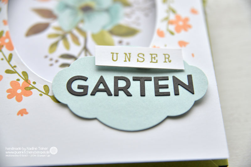 Das Innenleben der Schattenbox besteht aus einem zur „Ziehharmonika“ gefalteten Blatt Papier, auf das sowohl auf die Vorder- als auch auf die Rückseite Fotos geklebt werden können. Leporello nennt sich das in Fachkreisen. Die erste Seite habe ich mit einem Projekt Live Kärtchen dekoriert, weil die Reihe Hallo Sonnenschein so prima zum Gartenthema passt.