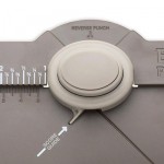 Lege das zurechtgeschnitte Papier an der Position, die dir der Rechner ausgespuckt hat an, drücke den Stanzknopf und ziehe mit dem enthaltenen Falzbein deine Falz. Die Vertiefung im Brett dient der Führung des Falzbeins. Möchtest du eine Verpackung herstellen, musst du noch ein zweites mal stanzen und falzen und zwar an der 2. Maßangabe.